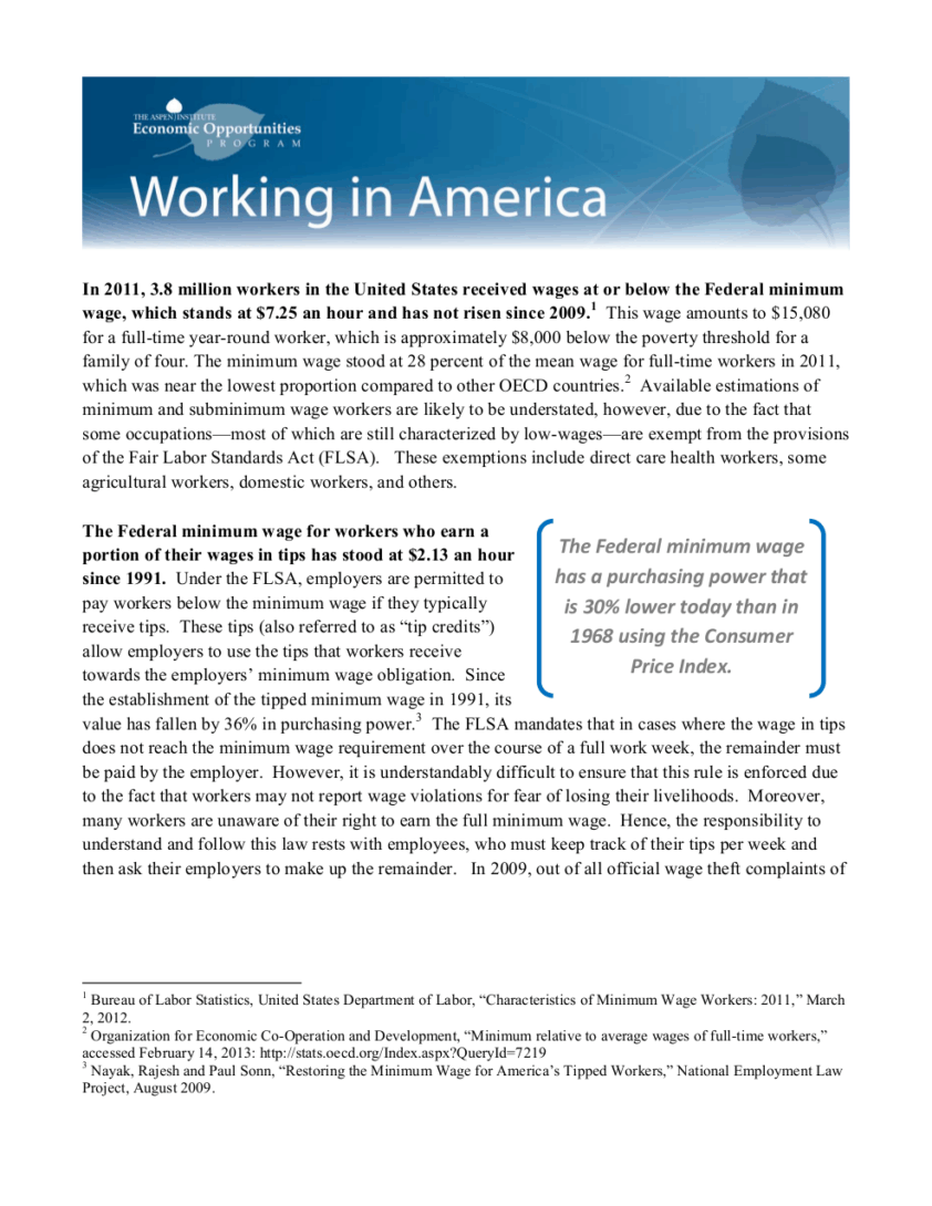 Learn more about the federal minimum wage with this fact sheet, produced in early 2013.