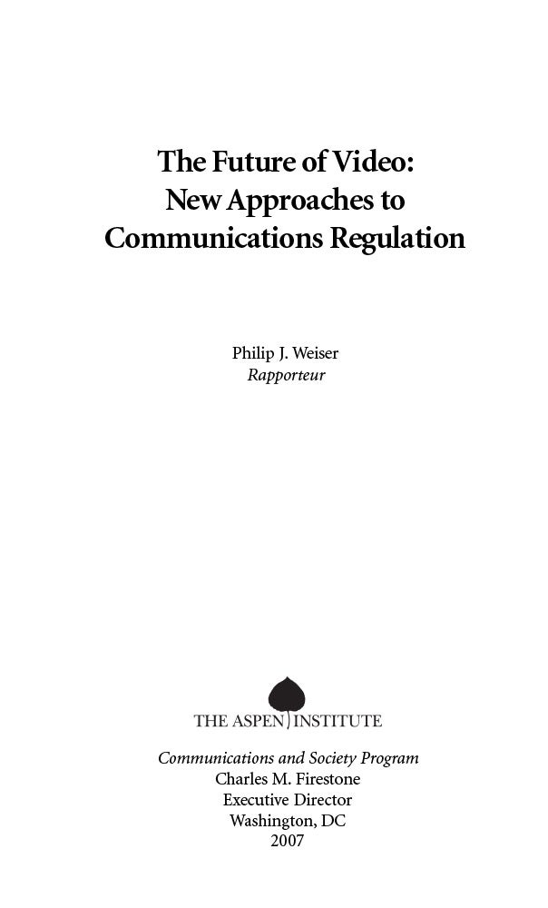 In the summer of 2006, the Aspen Institute Communications and Society Program convened the twenty-first annual Aspen Institute Conference on Communications Policy to address these issues. Thirty-four leaders, experts, and regulators in the media, telecommunications, and information technology fields gathered at Aspen, Colorado, for a three-day roundtable to discuss where video services are heading. This report, written by Professor Philip Weiser of the University of Colorado at Boulder, draws together a number of threads from those discussions into a coherent analysis of the central areas of concern for video’s transition to an Internet platform.