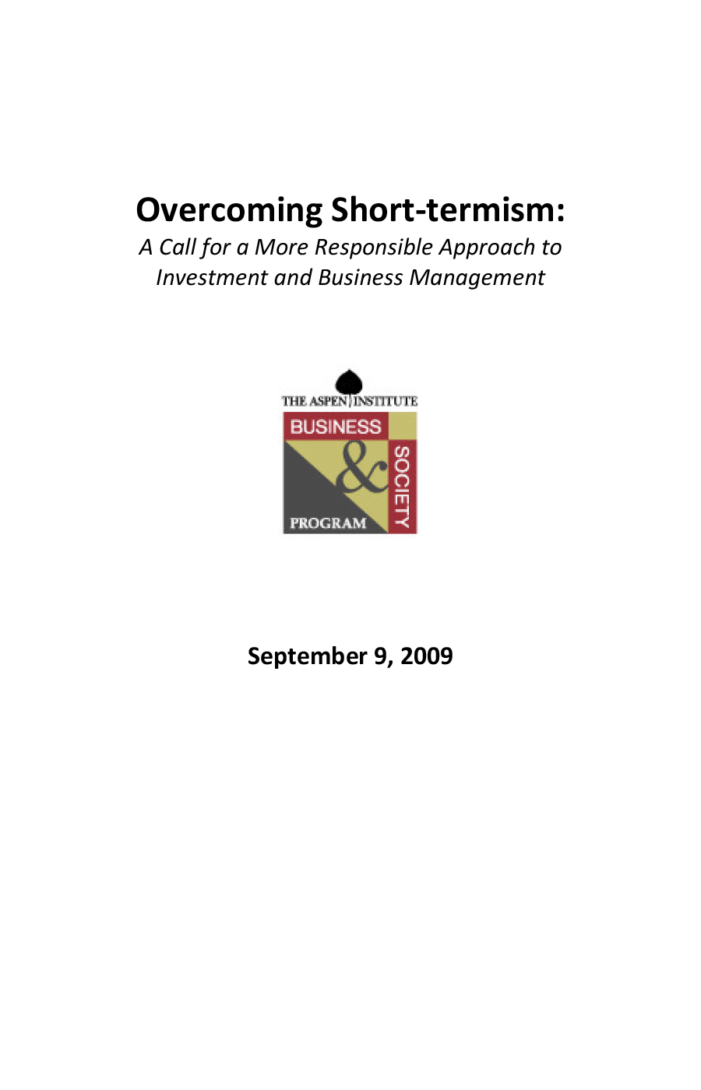 Twenty-eight leaders representing business, investment, government, academia, and labor joined the Aspen Institute Business & Society Program’s Corporate Values Strategy Group (CVSG) to endorse a bold call to end the focus on value-destroying short-termism in our financial markets and create public policies that reward long-term value creation for investors and the public good.