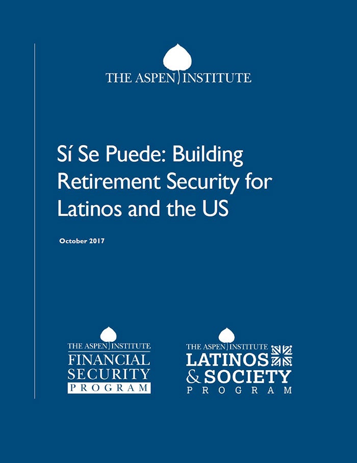 This brief, the product of a collaboration between the Aspen Institute Financial Security Program and the Aspen Institute Latinos and Society Program and released in conjunction with an Aspen-hosted panel and roundtable discussion, focuses on retirement insecurity in the Latino community. It synthesizes what we know about the problem and identifies policy and market implications and research gaps. Our hope is that the analysis will catalyze the creativity and political courage needed to address shortcomings in the current system.
