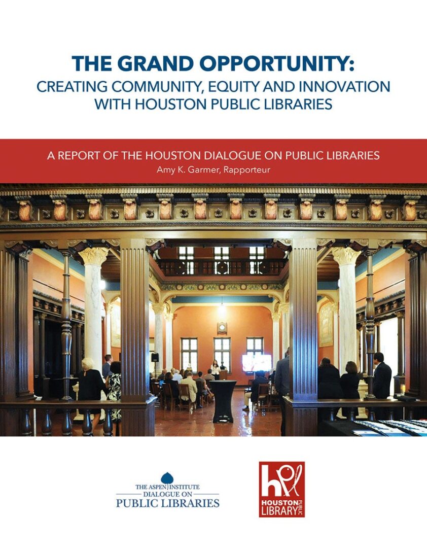 Thirty library, government, nonprofit, and business leaders convened at the historic Julia Ideson Library Building in Houston in November 2017 to explore opportunities for working more closely and more intentionally with Houston’s public libraries. The Houston Dialogue on Public Libraries highlighted the changing role of libraries in response to educational, economic, social, and technological changes in society and explored strategies for leveraging the resources and expertise of the Houston Public Library system to address critical needs for recovery and rebuilding in the wake of Hurricane Harvey.