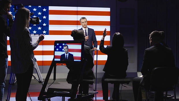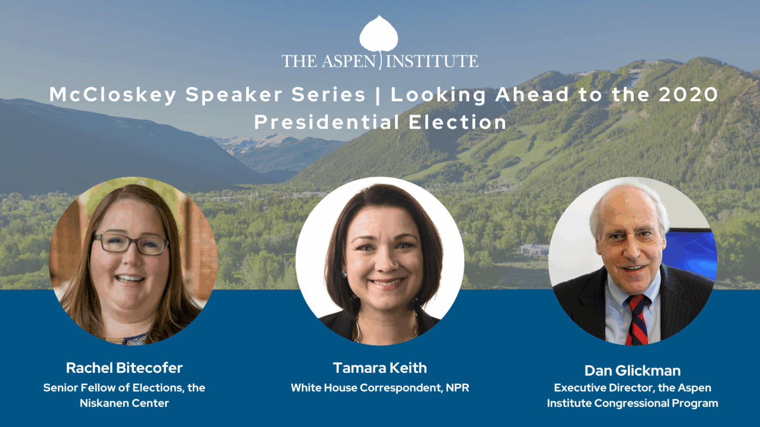 Rachel Bitecofer, senior fellow of elections at the Niskanen Center, and Tamara Keith, NPR White House correspondent, in conversation with Dan Glickman, executive director of the Aspen Institute Congressional Program.