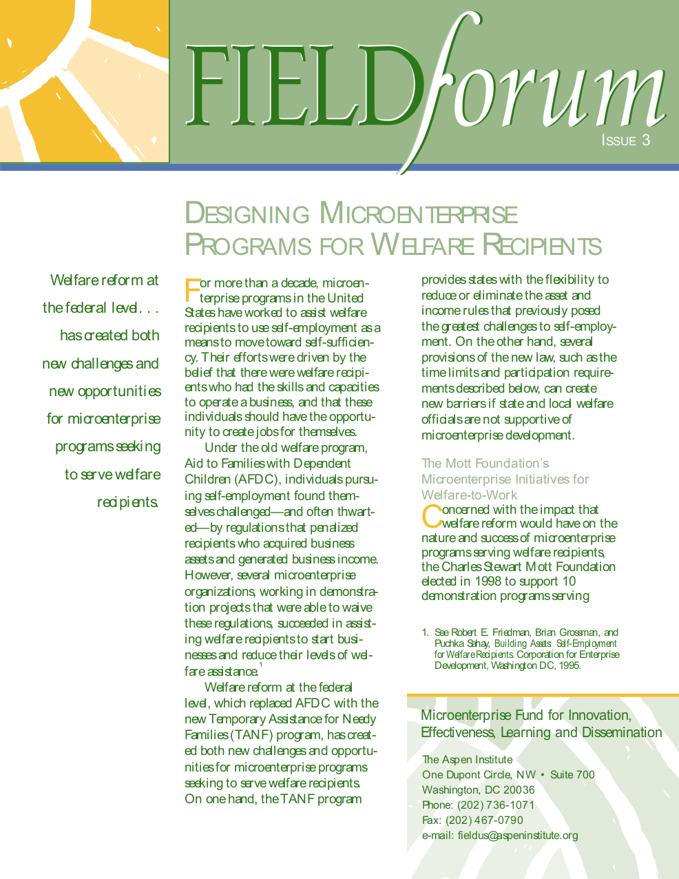 FIELD Forum Issue 3 – Designing Microenterprise Programs for Welfare Recipients