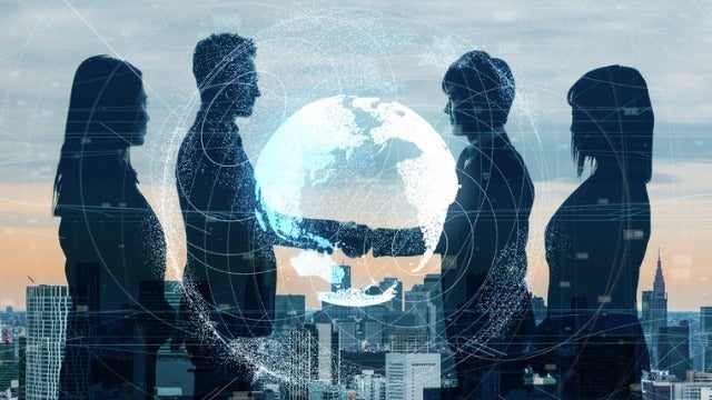 An illustration of a digitized globe connected by a network, representing cyber diplomacy.
