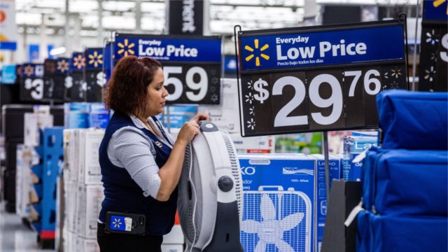 Walmart employee setting up a store display. (Photo: Timothy Fadek/Bloomberg News)
