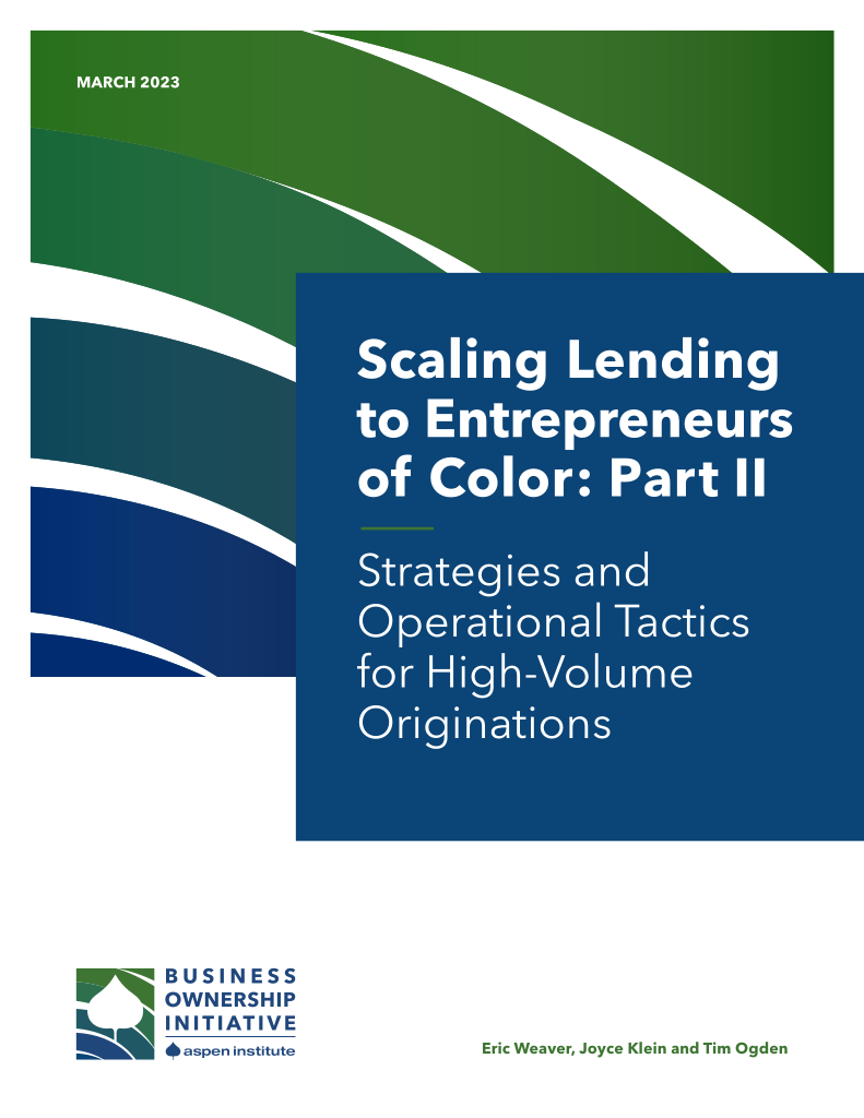 Cover page of the publication, “Scaling Lending to Entrepreneurs of Color: Part II - Strategies and Operational Tactics for High-Volume Originations”