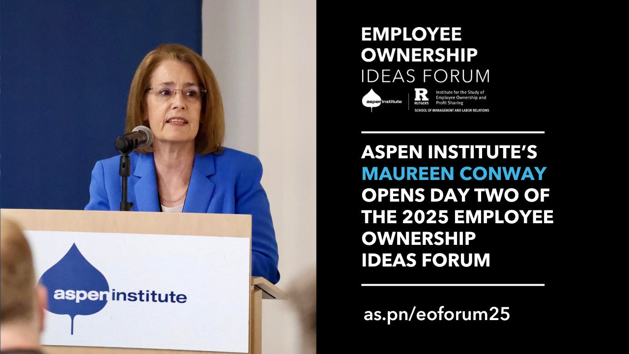 In this clip, the Aspen Institute’s Maureen Conway provides opening remarks on day two of the 2025 Employee Ownership Ideas Forum.