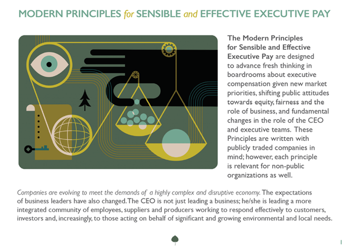 We offer five principles of executive pay and questions to facilitate board conversation about the need to align purpose and rewards, define fairness, and simplify pay structure.