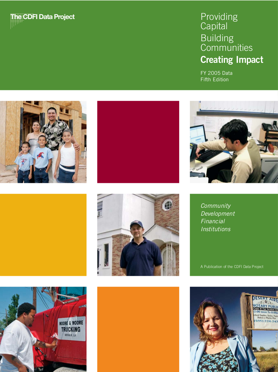 This publication, a product of the CDFI Data Project, documents the work of 496 community development finance institutions (CDFIs) investing $4.3 billion in Fiscal Year 2005, an investment linked to 39,151 jobs and 55,242 units of affordable housing.