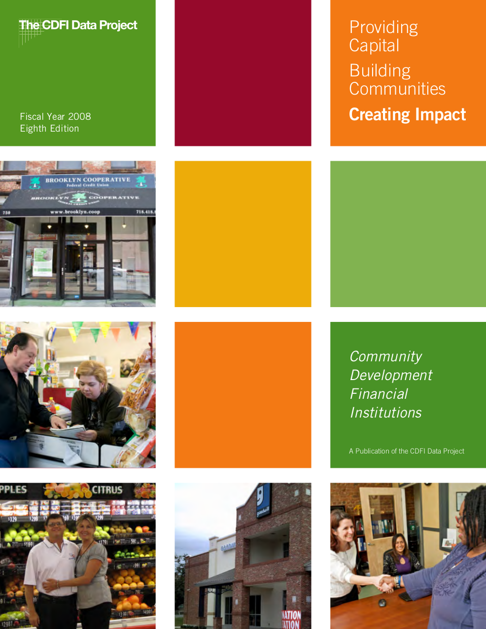 This publication, a product of the CDFI Data Project, documents the work of 508 community development finance institutions (CDFIs) investing $5.3 billion in new financing activity in Fiscal Year 2007, an investment linked to 34,276 jobs and 57,274 units of affordable housing.