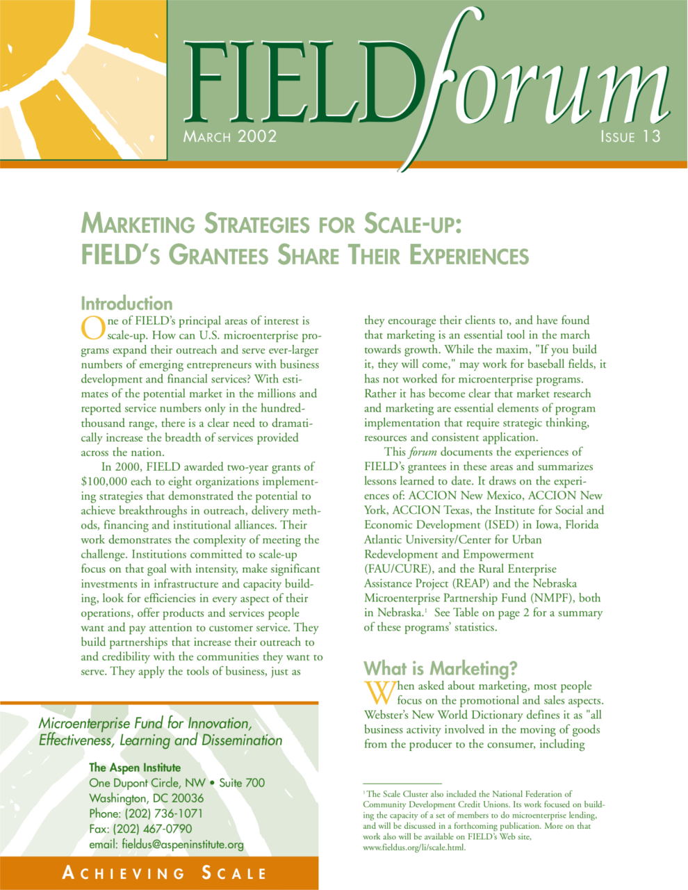 FIELD Forum Issue 13 – Marketing Strategies for Scale-Up: FIELD’s Grantees Share Their Experiences
