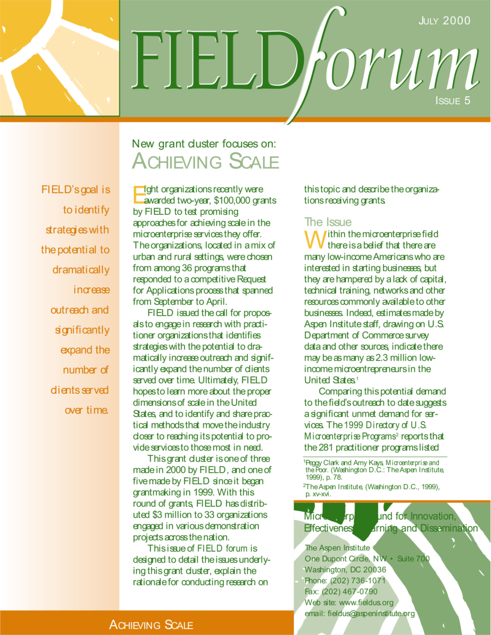 FIELD Forum Issue 5 – New Grant Cluster Focuses On: Achieving Scale