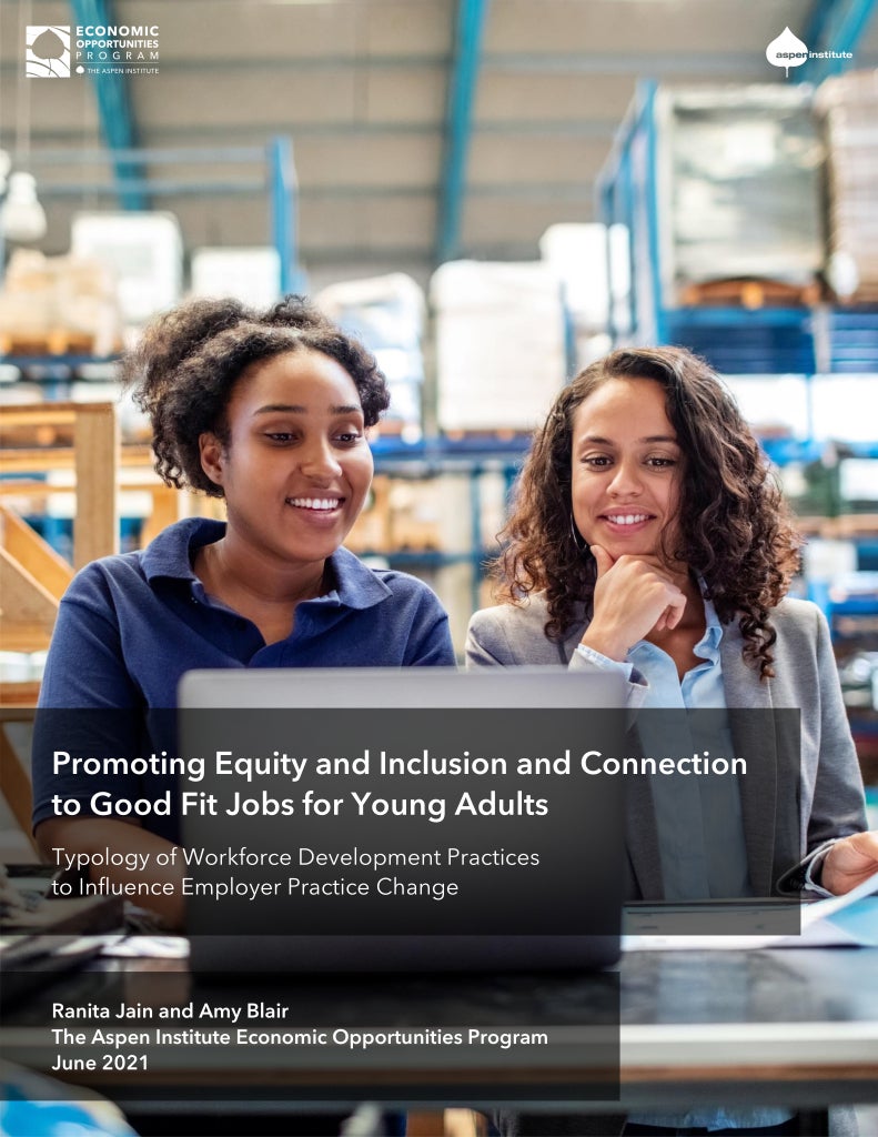 Cover page for the publication, "Promoting Equity and Inclusion and Connection to Good Fit Jobs for Young Adults"