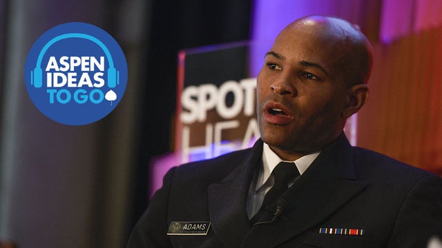 US Surgeon General Jerome Adams speaks with Alison Kodjak at Spotlight Health in June.
