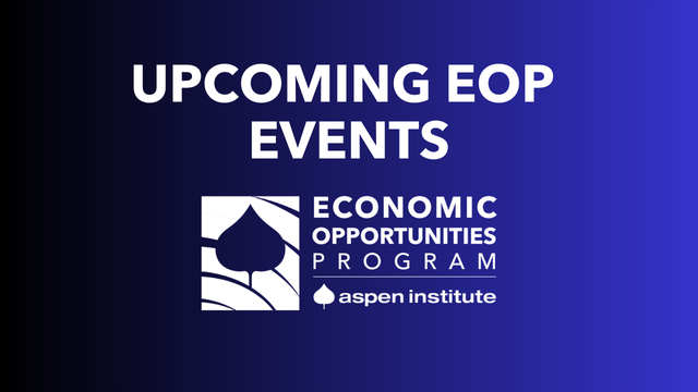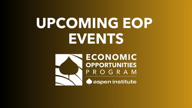 The Aspen Institute Economic Opportunities Program advances strategies, policies, and ideas to help low- and moderate-income people thrive in a changing economy. We hope you’ll join us at one of our upcoming events, which you can learn about below.