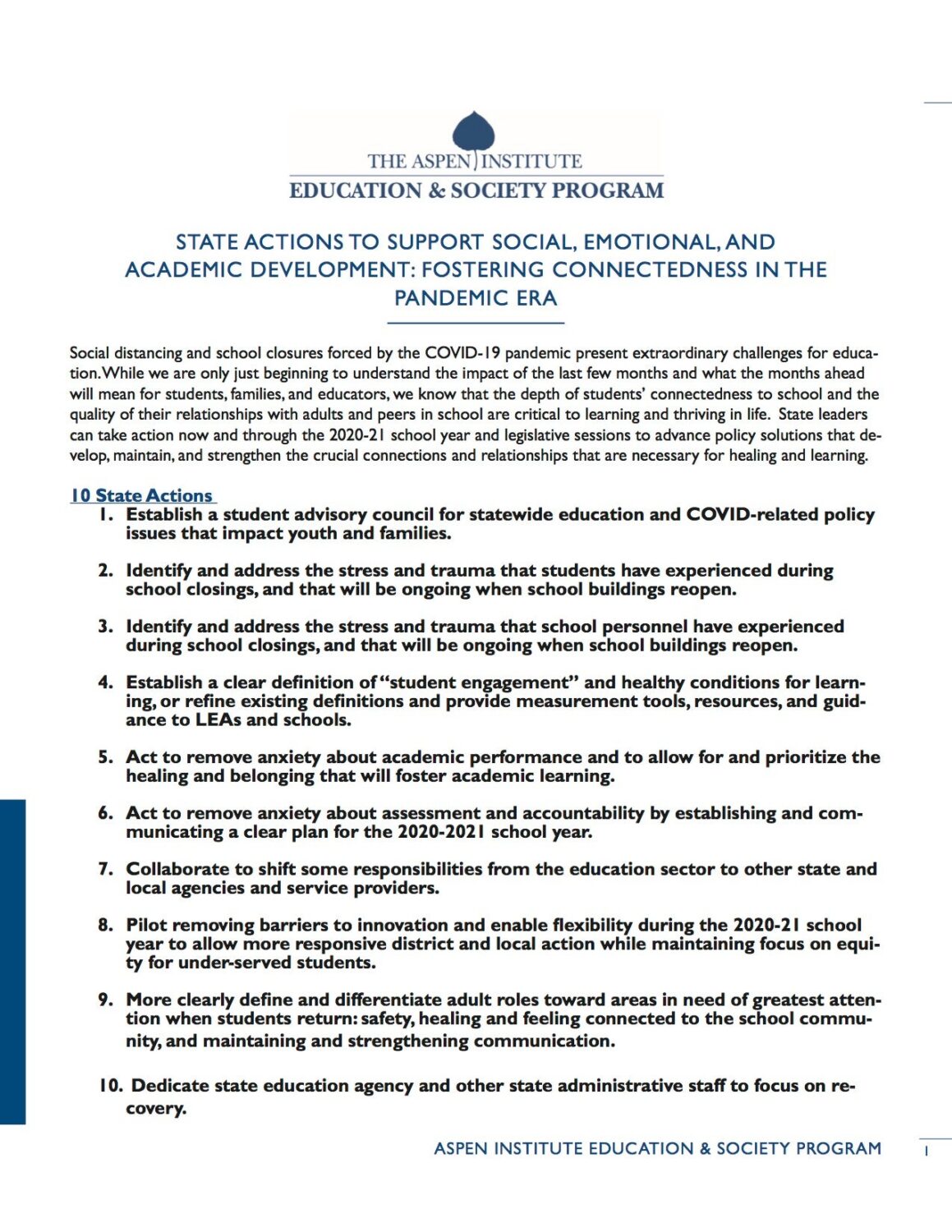 Fostering Connectedness in the Pandemic Era: Policy Recommendations to Support Social, Emotional, and Academic Development