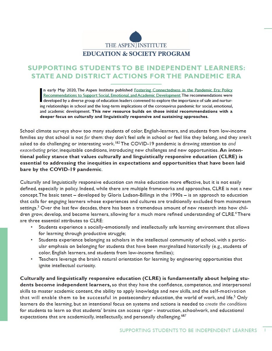 Supporting Students to be Independent Learners: State and District Actions for the Pandemic Era