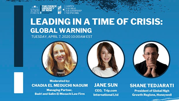 Two leaders in the Aspen Global Leadership Network, Jane Sun, CEO of Trip.com, and Shane Tedjarati, President of Global High Growth Regions at Honeywell, share how they are leading through the COVID-19 crisis and what we might learn from their experiences.