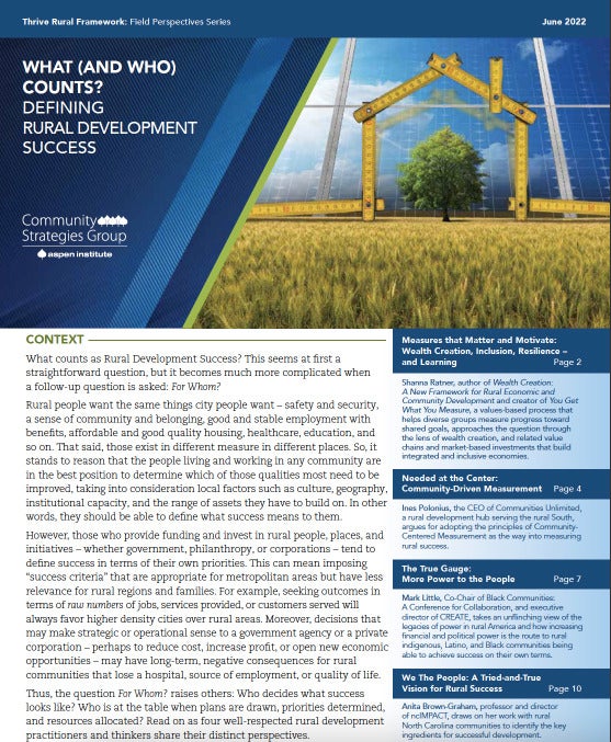 This Call to Action highlights six principles for measuring rural development progress to encourage funders and investors to design programs that consider lower-capacity communities’ realities, needs, and goals.