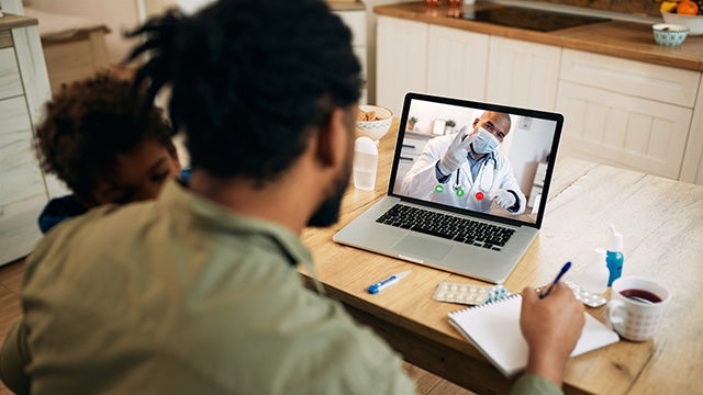 Black pediatrician having video call with a father