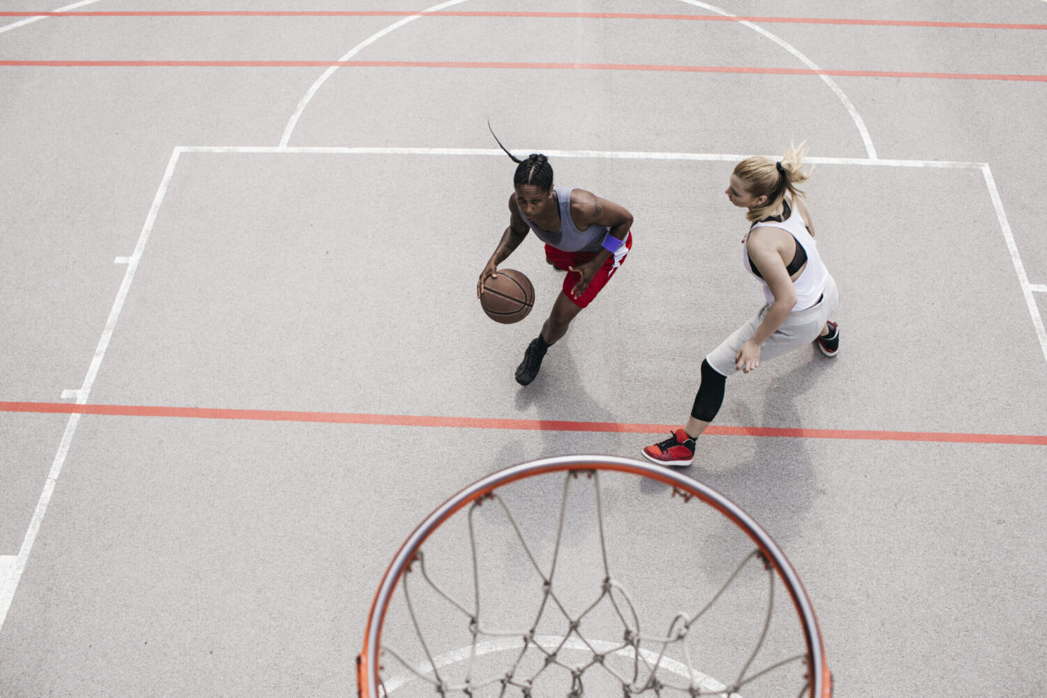 Two basketball players pivot around one another to line up a shot. It represents a strategic reorientation on AI competition with China.