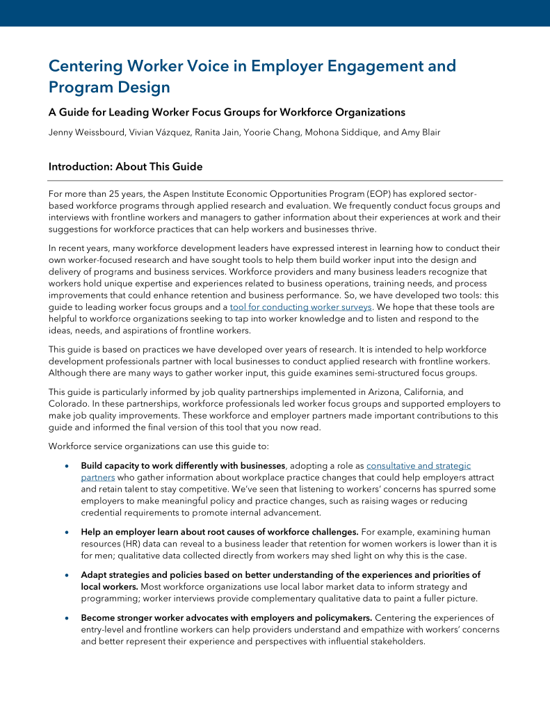 Centering Worker Voice in Employer Engagement and Program Design: A Guide for Leading Worker Focus Groups for Workforce Organizations