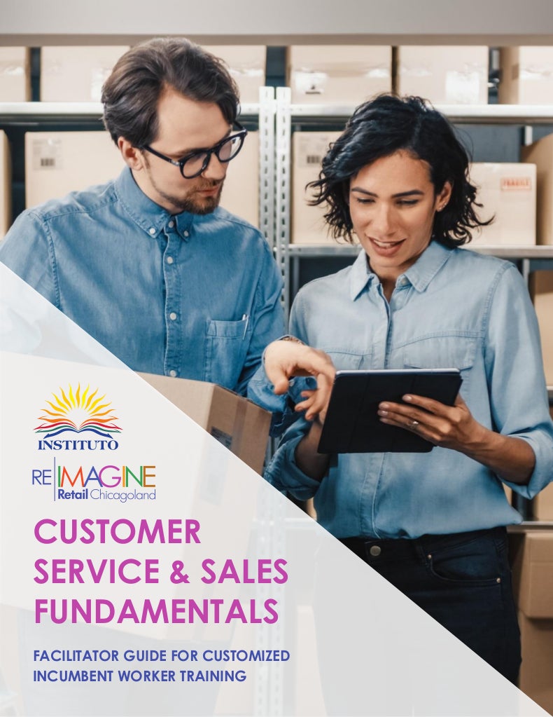 Cover page: "Customer Service & Sales Fundamentals: Facilitator Guide for Customized Incumbent Worker Training"