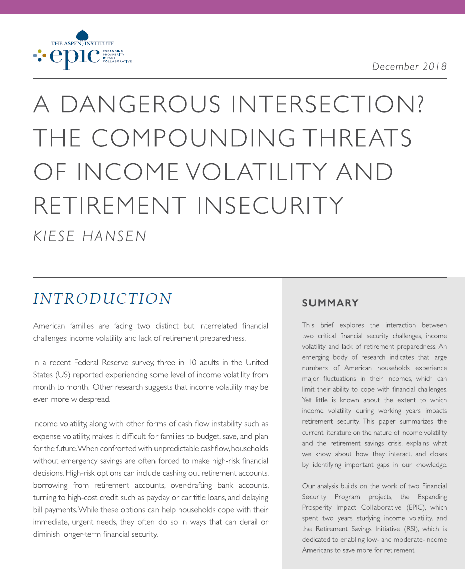 This brief explores the interaction between two critical financial security challenges, income volatility and lack of retirement preparedness.