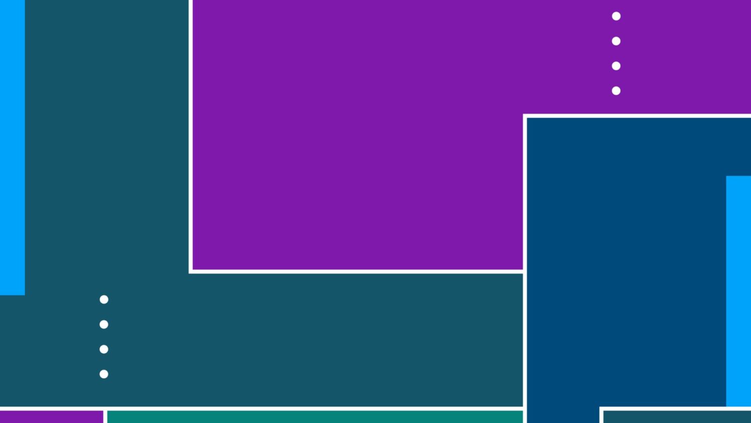 A geometric pattern of overlapping squares in shades of blue, purple, and teal.