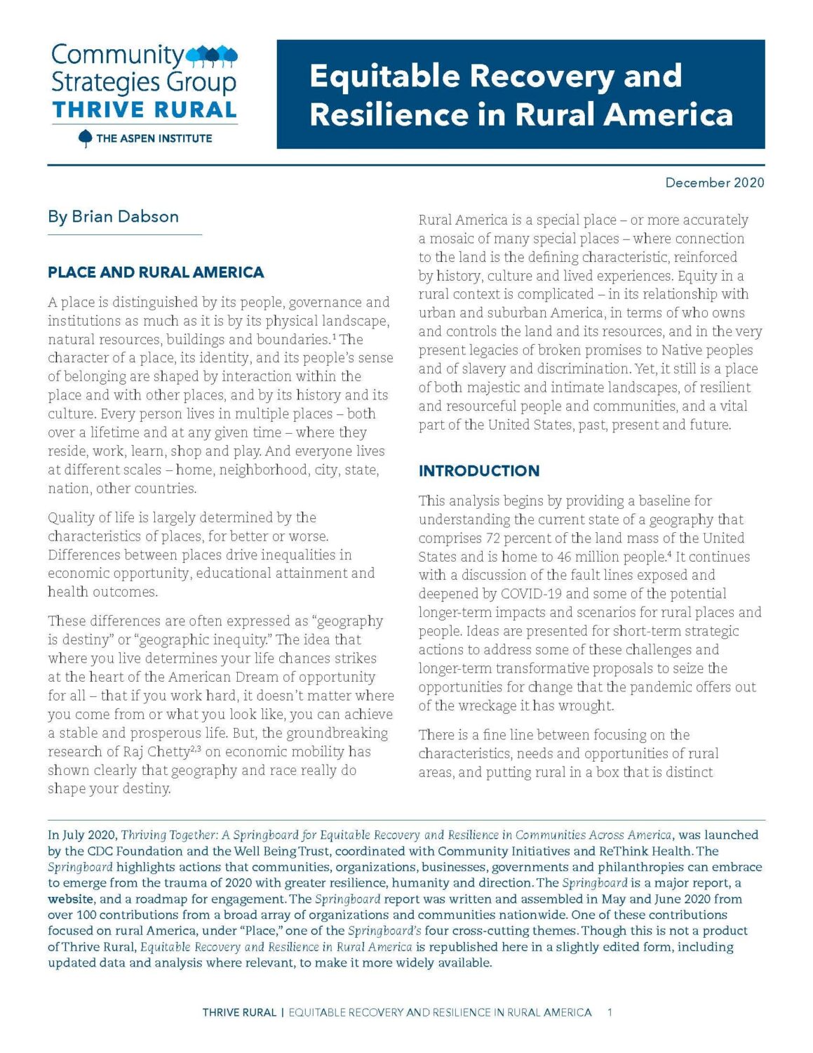 Quality of life is largely determined by the characteristics of places, for better or worse. Differences between places drive inequalities in economic opportunity, educational attainment and health outcomes. A Thrive Rural Brief by Brian Dabson.