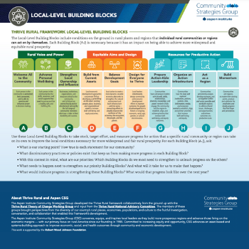 This piece of the Thrive Rural Framework, the Local-Level Building Blocks, includes conditions on the ground in rural places and regions that individual rural communities or regions can act on by themselves.
