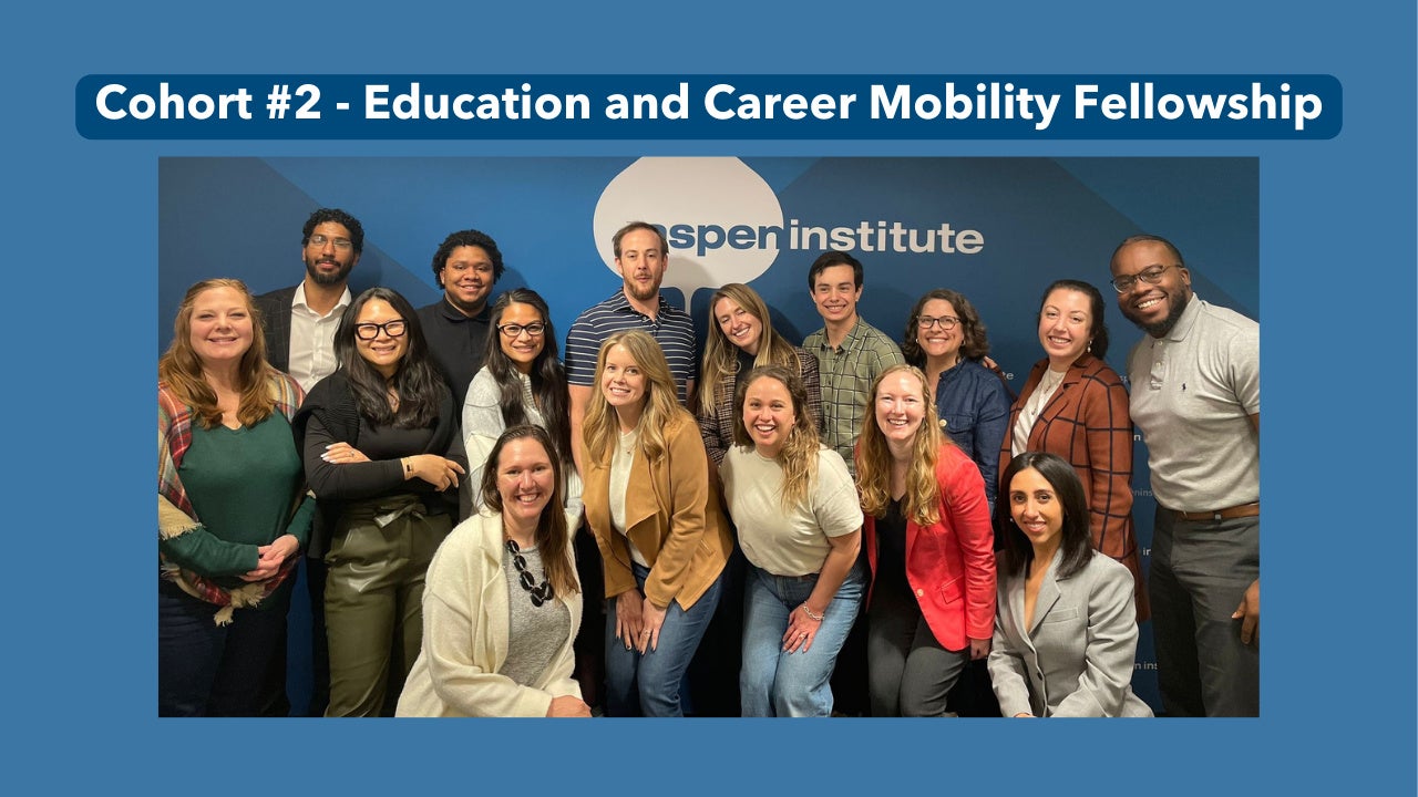 Decorative banner featuring the logo of UpSkill America at the Aspen Institute. The background includes a stylized silhouette of two construction workers wearing hard hats and looking at a construction site.
