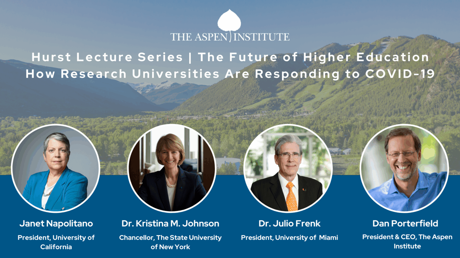 University of California President Janet Napolitano, State University of New York Chancellor Kristina Johnson, and University of Miami President Julio Frenk, in conversation with Dan Porterfield