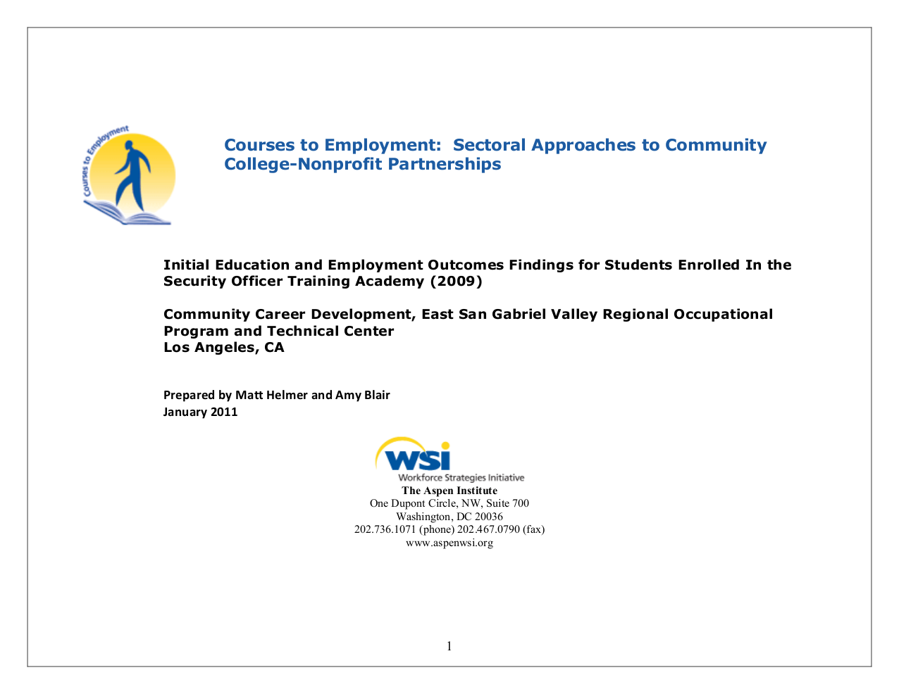Courses to Employment: Initial Education and Employment Outcomes Findings for the Security Guard Academy in Los Angeles, CA