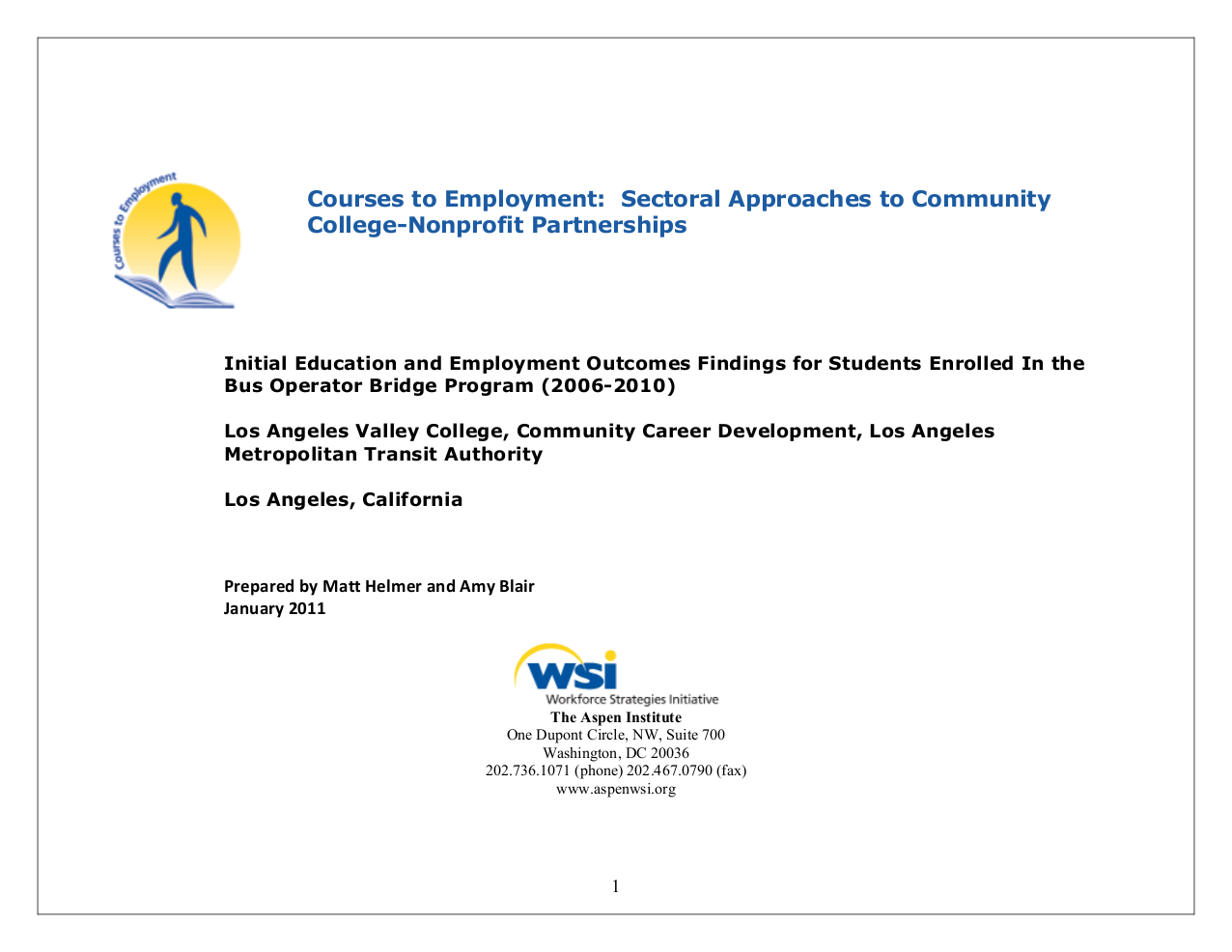 This report details initial findings from research on the education and employment outcomes of 651 participants who enrolled in the Metro Bus Operator Bridge Program in Los Angeles between 2006 and February 2010.