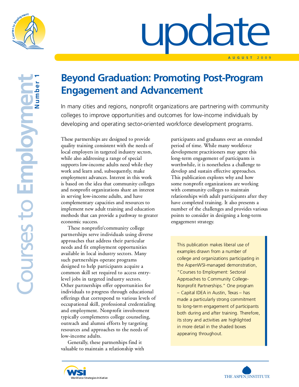 Courses to Employment Update (Number 1) Beyond Graduation: Promoting Post-Program Engagement and Advancement