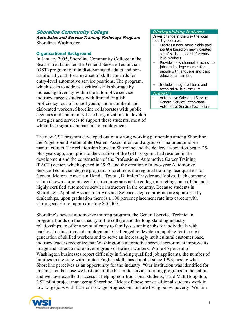 Shoreline Community College – Auto Sales and Service Training Pathways Program (Shoreline, Wash.)