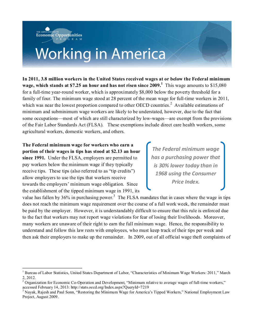 Learn more about the federal minimum wage with this fact sheet, produced in early 2013.