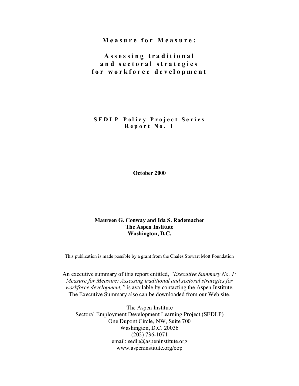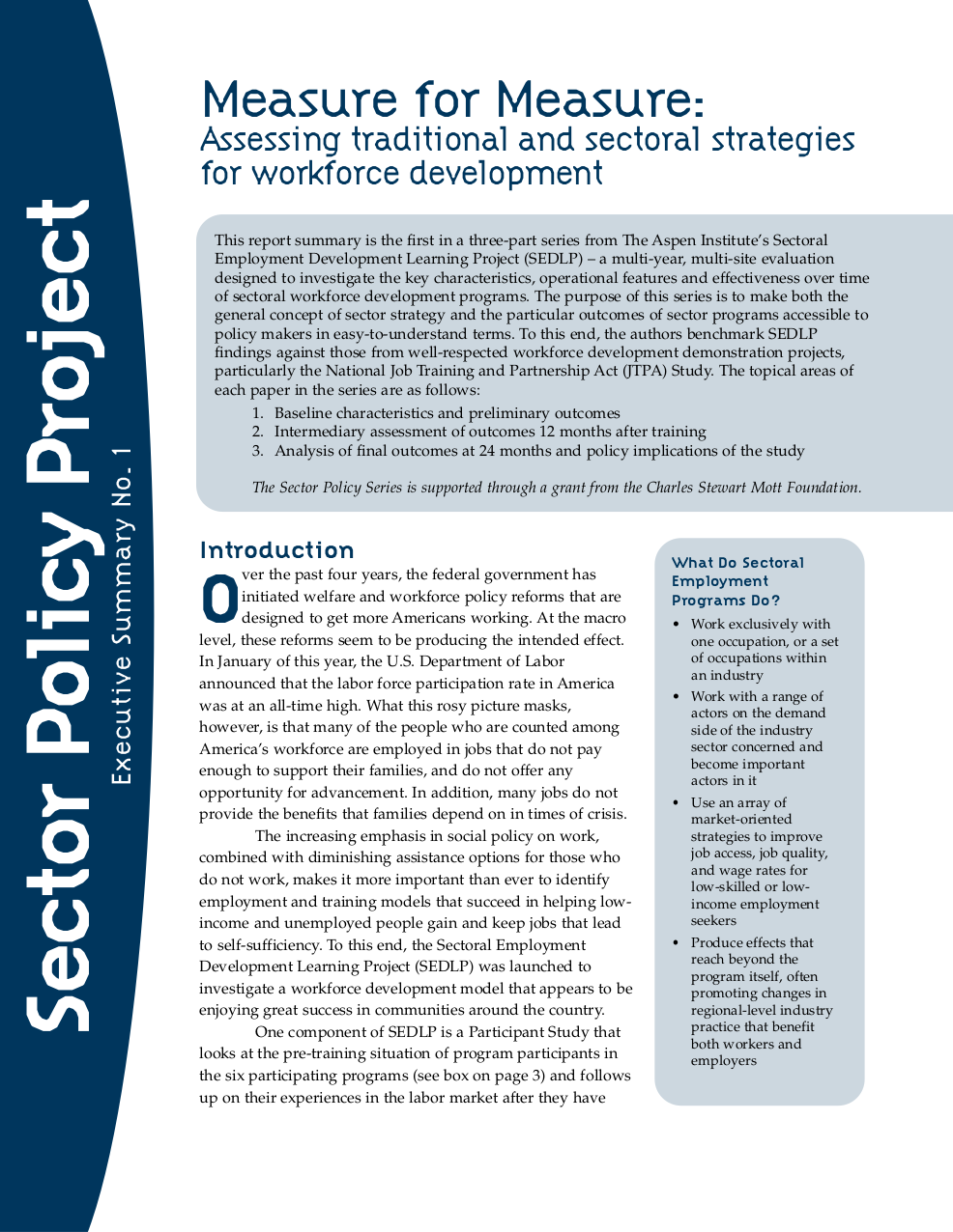 Sector Policy Project Report No. 1-Measure For Measure: Assessing Traditional And Sectoral Strategies For Workforce Development