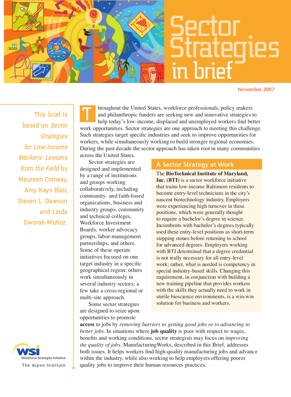 This publication is designed to provide a concise overview of the elements and outcomes associated with sector work.