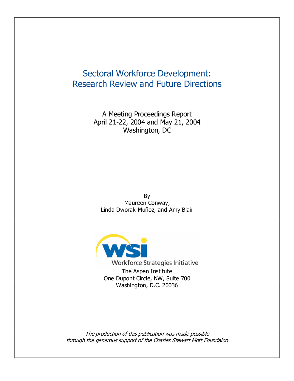 This publication examines the sectoral development field, explaining how it differs from other workforce development approaches, how it has grown over time, what is has achieved, and how it can be used to strengthen regional economies and business competitiveness.