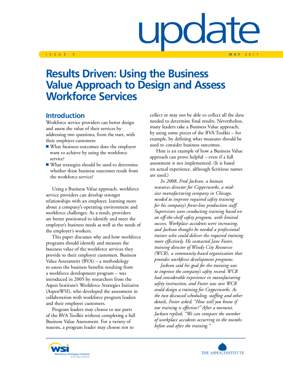 Results Driven: Using the Business Value Approach to Design and Assess Workforce Services