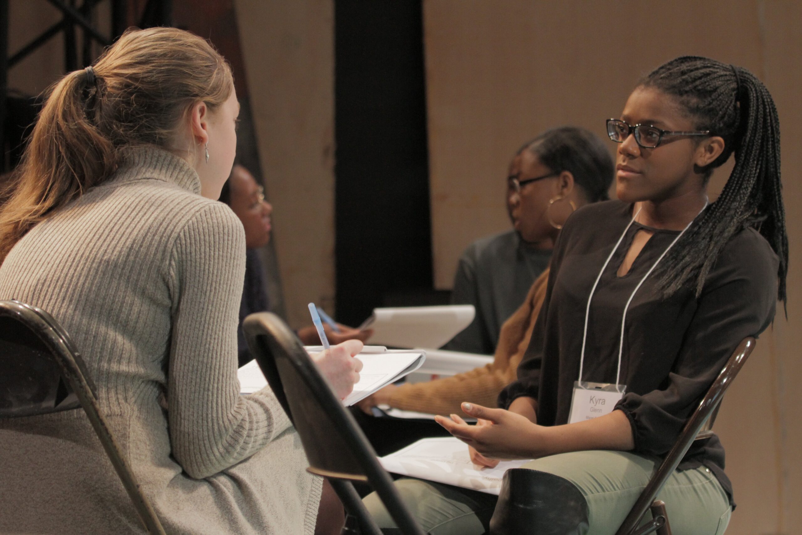 Students were welcomed to the Gala Hispanic Theatre in Columbia Heights on day two for a full day of discussion framed by excerpts from books, news and academic articles, news videos, documentary film clips, and submissions to The Race Card Project – now part of The Bridge, The Aspen Institute’s new program on race, cultural identity, connectivity, and inclusion – a dynamic new endeavor powered by the Peabody Award-winning Race Card Project founded by former NPR Journalist Michele Norris.
