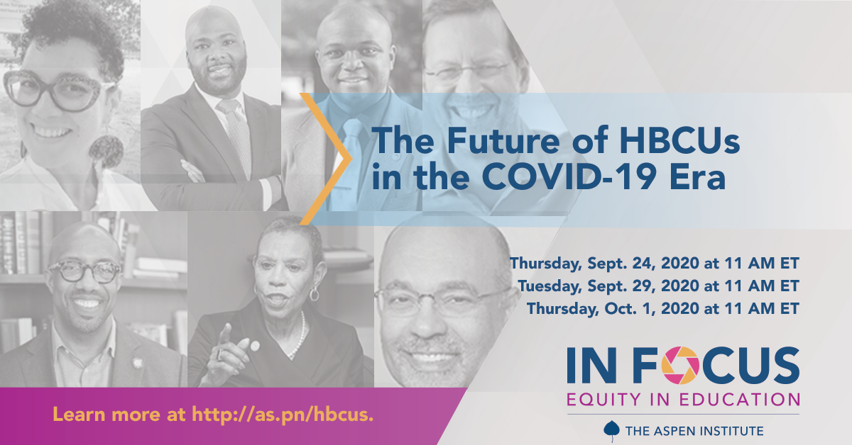 The Aspen Partnership for an Inclusive Economy (APIE), College Excellence Program (CEP) and Weave: The Social Fabric Project is proud to present The Future of HBCUs in the COVID Era, a three-part digital series that explores the historic lack of investment in HBCUs, the unique challenges they face in the pandemic, and how we can create a more equitable future for our young people.