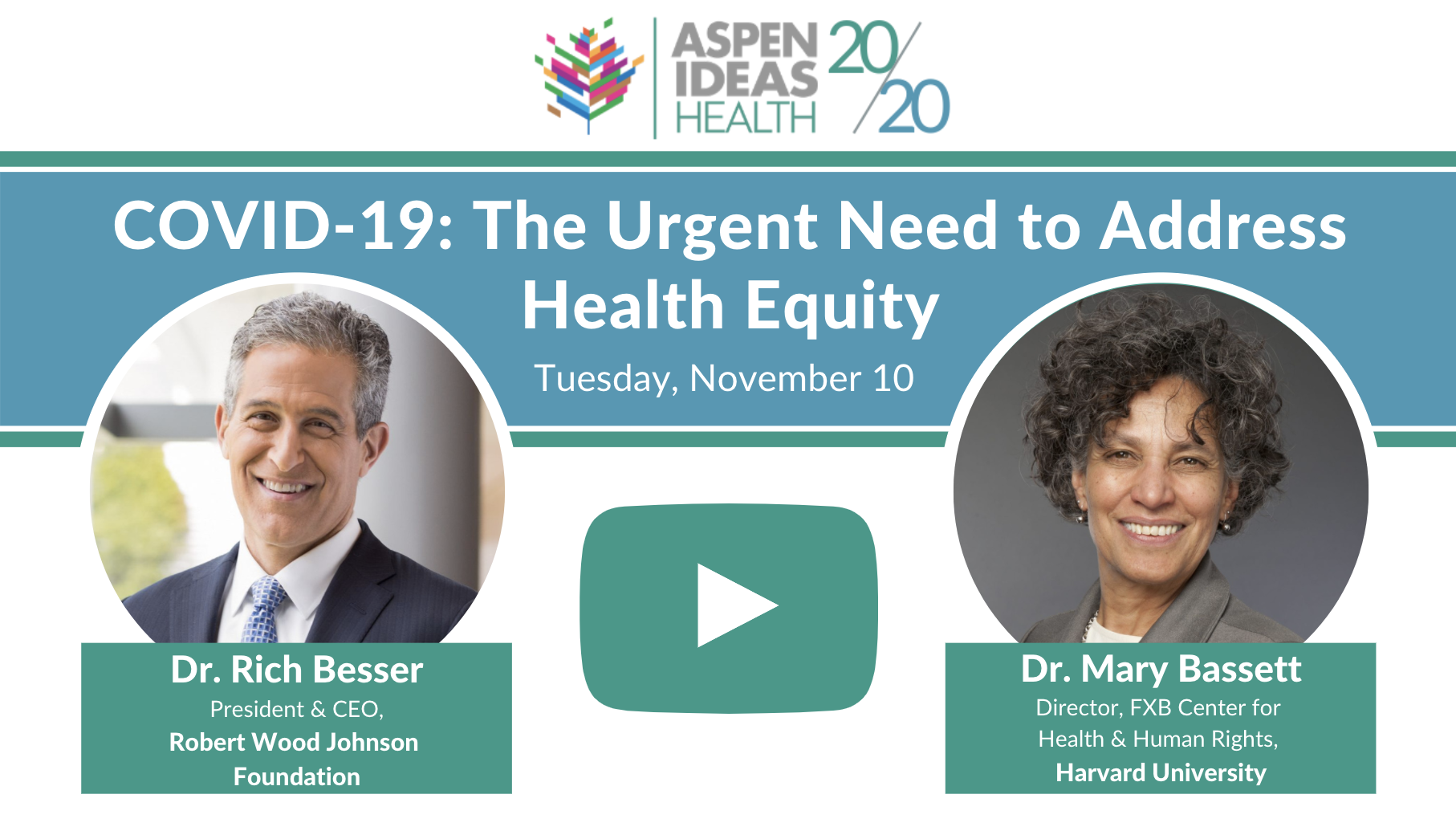 The evidence is clear – the COVID pandemic has hit Native Americans, communities of color, and other high-risk and vulnerable populations the hardest, putting front and center the nation’s systematic health and societal disparities. The immediate impact is already evident: disproportionate job, wage, and savings losses; health and health care challenges; food insecurity; housing instability; caregiving gaps; and education disruption. Additional resources can help now, but what about the long-term health and financial effects? How can we ensure that these individuals weather the storm and that needed societal changes are put firmly in place? On November 10, Dr. Richard Besser, President and CEO of the Robert Wood Johnson Foundation, and Dr. Mary Bassett, Director of the FXB Center for Health and Human Rights at Harvard University, joined Aspen Ideas: Health for a hard look at the communities being left behind by America’s COVID-19 response and the prospects for recovery that promise a brighter, more just future through the lens of health equity.
