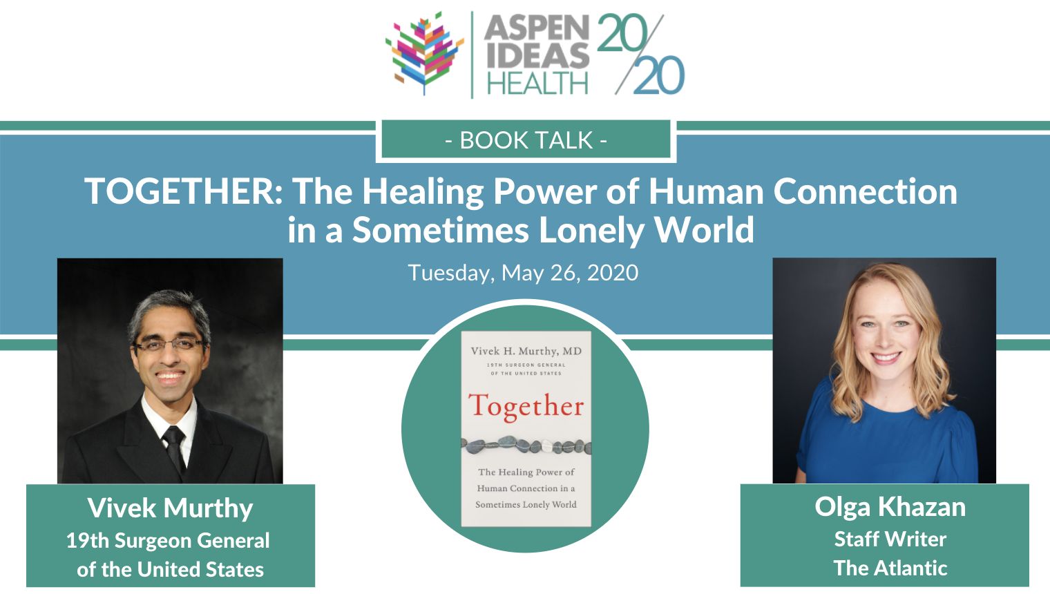 As a physician and the 19th Surgeon General of the United States, Dr. Vivek Murthy has seen the physical and emotional toll of social disconnection rising throughout society over the past few decades. In his new book TOGETHER, Dr. Murthy explores the importance of human connection, the hidden impact of loneliness on our health, and the social power of community. What he could not anticipate, however, was the unprecedented test that our global community would face just as the book was going to press. With COVID-19 impacting people across the globe, the public health imperative is clear: to save lives, we need to increase the space between us. But what impact does social distancing have on our mental and emotional health? How can we use the shared experience of this pandemic as an opportunity to fortify and strengthen our connections and communities? Watch Dr. Murthy discuss his book’s timely lessons, in conversation with Olga Khazan of The Atlantic. This conversation took place on May 26, 2020, as part of our Aspen Ideas: Health 20/20 digital series.